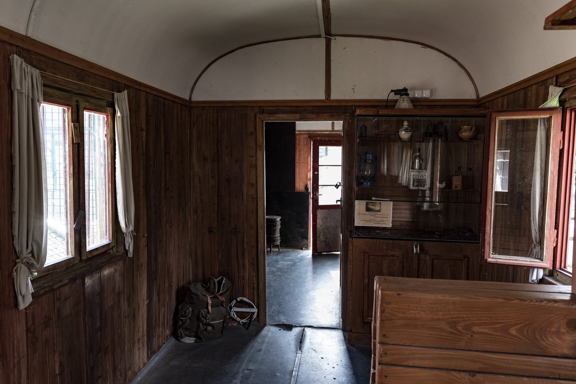 Alter Eisenbahnwaggon als Aussichtsplattform im ZooOld railway car as viewing platform in the zoo